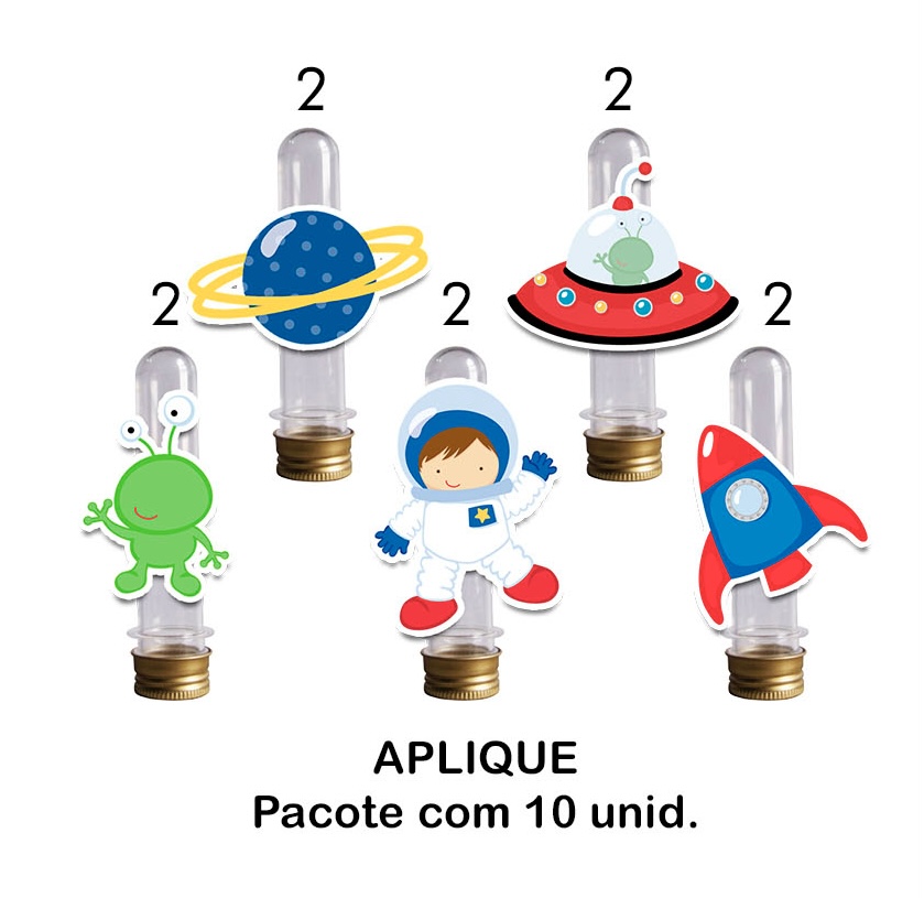 Pacote com 10 apliques para lembrancinhas, diversos temas